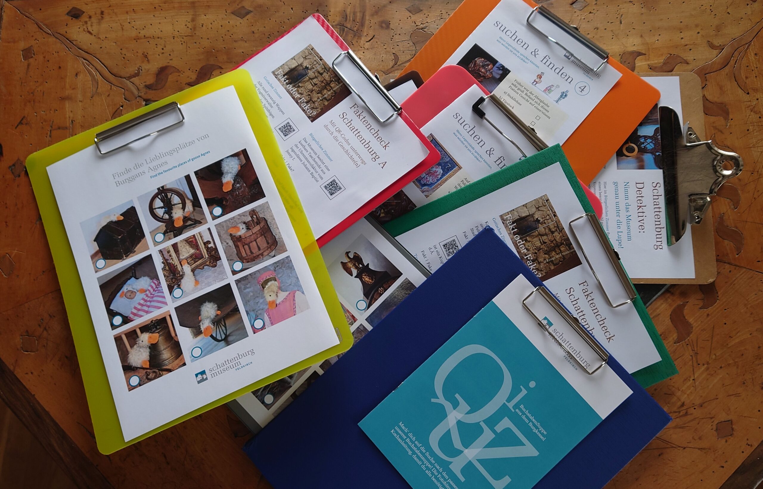 Verschiedene Quizzes und Suchspiele für Vorschulkinder und Schüler:innen warten an der Museumskassa auf wissbegierige Kids. Egal ob ihr Tiere in der Burg, die Lieblingsverstecke von Burggeist Rudi und Burggans Agnes oder die Lösungen zu unserem Quiz die „Schattenburgdetektive“ sucht, ein Besuch zu einem selbst gewählten Zeitpunkt macht der ganzen Familie Spaß.