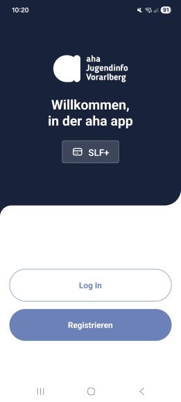 1. Öffne die aha App und klicke auf „Log In“, um deine aha card zu aktivieren.