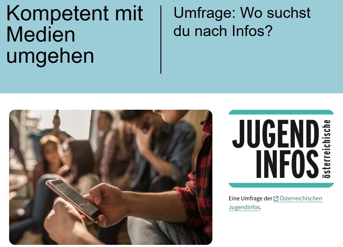 Die Österreichischen Jugendinfos möchten herausfinden, welche Plattformen du (am meisten) verwendest, wenn du nach Informationen suchst.
