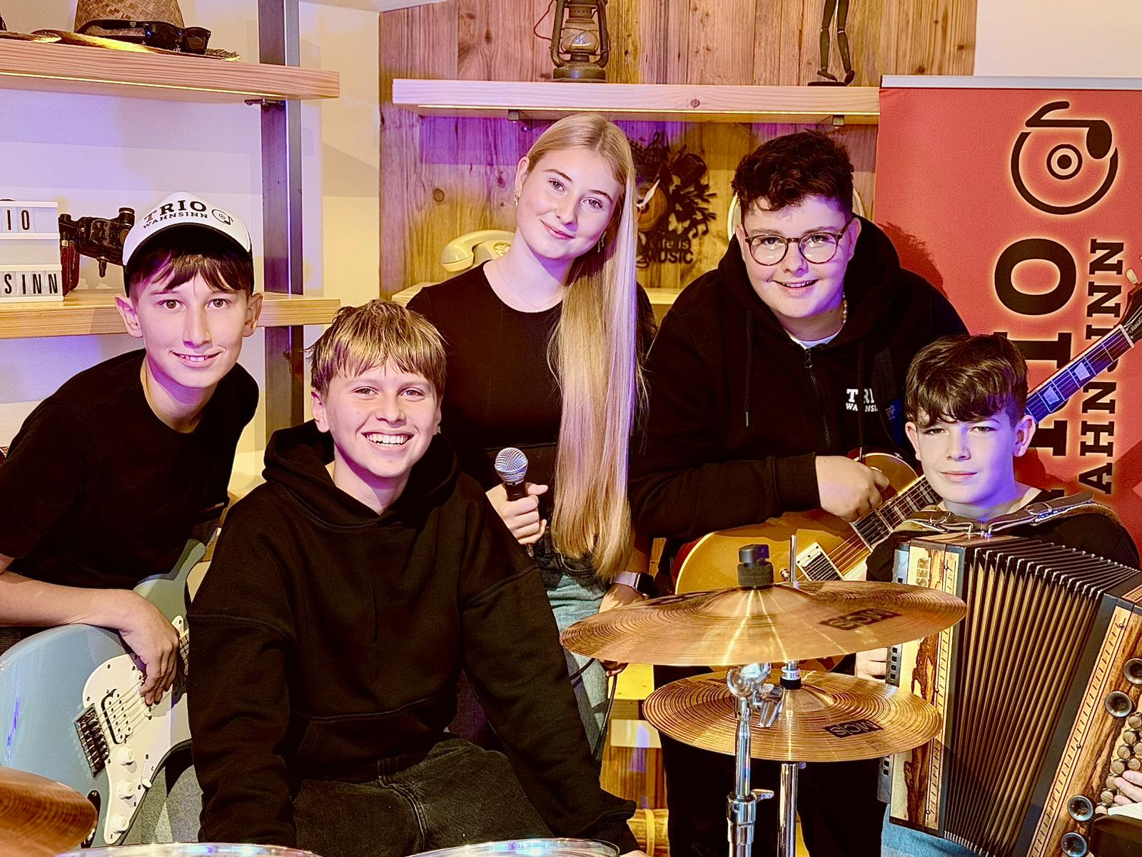 Trio Wahnsinn – wir sind eine junge Newcomer-Band aus Vorarlberg, welche mit großem Eifer ihren Zielen nachjagt. Seit nun fast vier Jahren drücken wir, das sind Aaron, Emil und Luis gemeinsam die Schulbank der Musikmittelschule Bregenz Stadt. Rasch bemerkten wir, dass wir richtig gut zusammenpassen und so rocken wir nun seit gut eineinhalb Jahren als Trio Wahnsinn die Bühnen. Letzten Herbst haben wir durch Malea und Samy eine große Bereicherung erfahren. Nun geben wir zu fünft GAS! Seit Beginn an haben uns Familie, Freunde und Fans mit sehr viel Begeisterung begleitet. Hierfür möchten wir uns bei euch bedanken und würden uns freuen, wenn ihr mit uns den Abend rockt – gemeinsam mit euch geben wir VOLLGAS sodass es eine „Trio Wahnsinniger“ Abend wird!